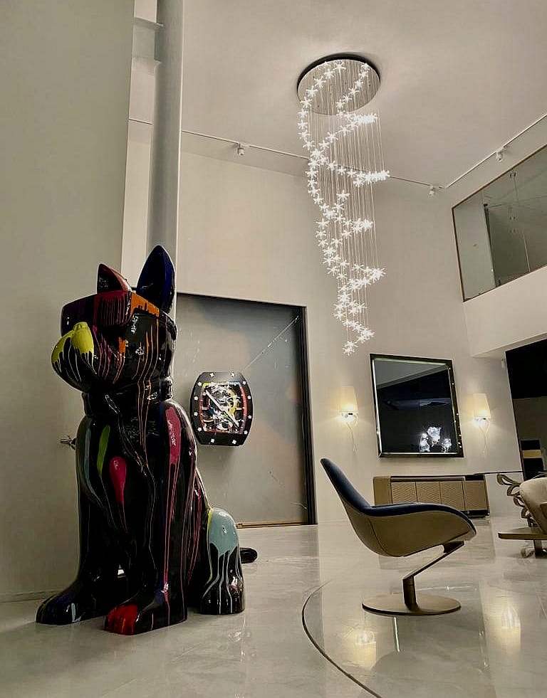 His aim is to transmit the knowledge humanity possesses through codified works that reflect this multidisciplinary approach, echoing that of the ancient scholar, within a balanced repetition of geometric forms derived from the Golden Ratio.